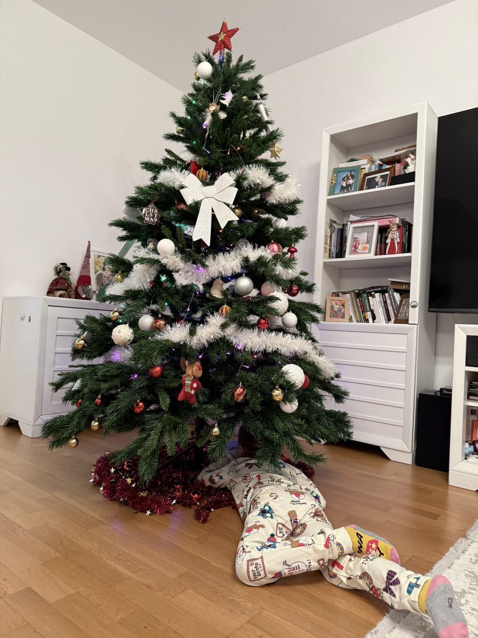 M-am trezit la 5 dimineața ca să termin newsletter-ul. Și chiar acum, înainte de a vi-l trimite, am primit poza asta de acasă. A venit Moșul la 6:30 AM. Dar pe la 7 încă se mai căutau sub brad cadouri ascunse :)